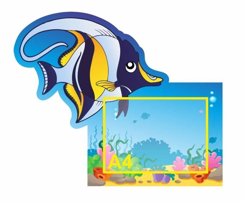 Небольшой информационный стенд для оформления бассейна или тематической группы в детском саду, наверняка понравится деткам, он красочный и жизнерадостный, на стенде изображена яркая и необычная рыбка, о которой, при желании, воспитатель может рассказать интересные факты.
