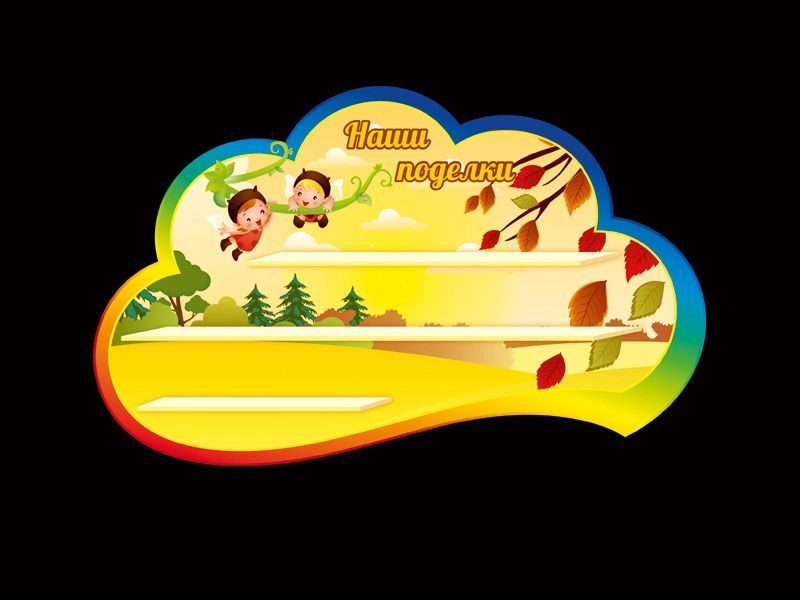 Стенд «Наши поделки» для оформления группы в детском саду «Лапушки». Красочный, яркий стенд для таких же ярких и оригинальных поделок детишек. На стенде размещены полочки для поделок детей оптимального размера, не закрывая дизайн стенда, в стиле группы «Лапушки».