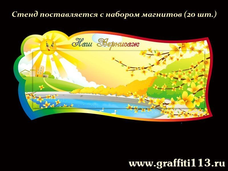 Стенд «Наш вернисаж» для оформления группы «Лучики» в детском саду. Фигурный стенд с магнитным полотном позволит разместить рисунки маленьких художников.