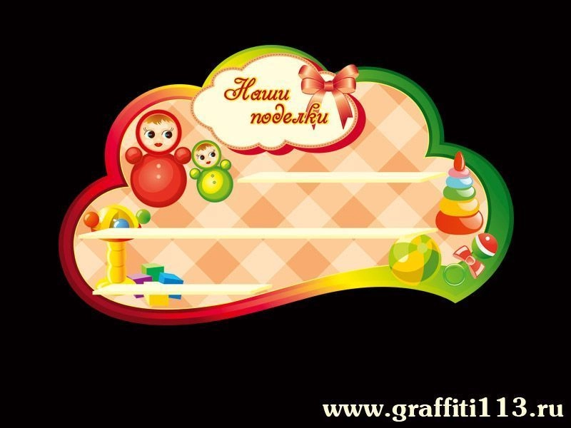 Стенд «Наши поделки» для оформления группы «Неваляшки» в детском саду. Красочный, яркий стенд для таких же ярких и оригинальных поделок детишек. На стенде размещены полочки для поделок оптимального размера, не закрывая дизайн стенда, в стиле группы детского сада «Неваляшки».