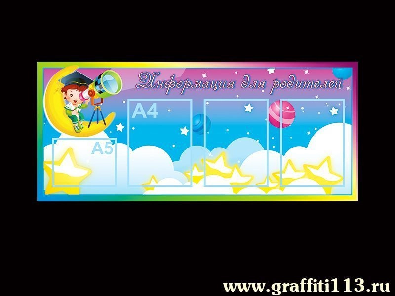 Стенд информационный для группы «Почемучки» в детском саду. Данный стенд не только позволяет разместить подробную информацию о группе, но и является оригинальным украшением интерьера.