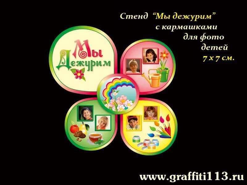 На стенде предусмотрены кармашки для фотографий детей размером 7 см х 7 см. На каждом лепестке по два кармашка. Этот стенд поможет воспитателям приучить деток ответственно подходить к каждому делу. Дети, в свою очередь, будут рады видеть свои фотографии и будут внимательнее относиться к своим обязанностям.