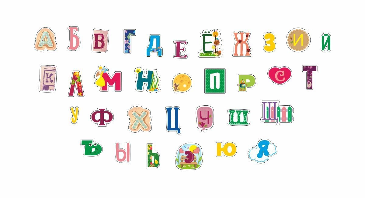 Буква "Ч" - 25 см х 37 см, Буква "Ш" - 31 см х 23 см, Буква "Щ" - 46 см х 33 см, Буква "Ъ" - 32 см х 23 см, Буква "Ы" - 21 см х 29 см, Буква "Ь" - 18 см х 34 см,