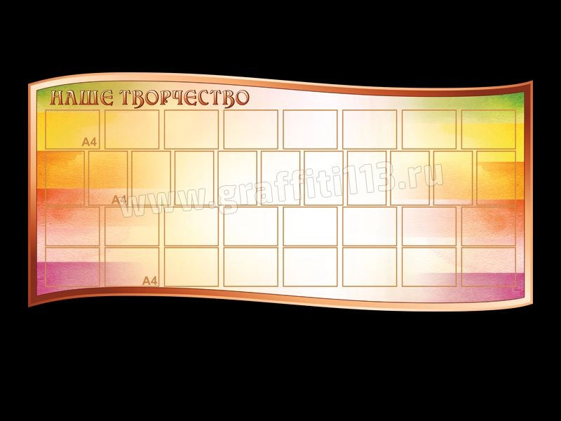 Стенд изготовлен из вспененного пластика ПВХ 3 мм. Изображение - интерьерная печать на глянцевой пленке Orafol ( пр-во Германия), экосольвентными чернилами с разрешением печати 1440 dpi. Карманы выполнены из современного прозрачного и прочного материала - ПЭТ.