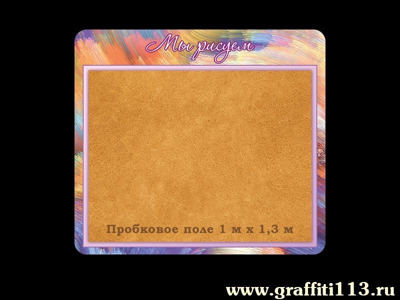 Большой и красочный стенд с пробковым полем для размещения рисунков детишек в детском саду, клубе или развивающем центре. Такой стенд с красочным оформлением освежит интерьер вашего учебного заведения, а благодаря большой пробковой поверхности вы с удобством сможете разместить от 16-ти до 20-ти детских работ А4 формата.