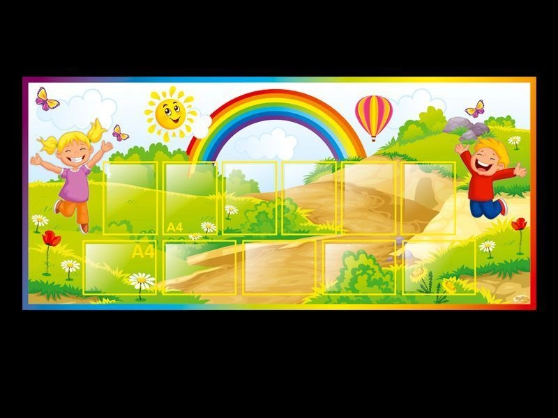 Большой, красочный стенд, выполненный в ярких, летних тонах, разработан специально для удобного и подробного представления важной информации в детском саду. Такое жизнерадостное оформление данного информационного стенда, безусловно, добавит красок и настроения вашему детскому саду. Удобное расположение карманов формата А4, позволит разместить большое количество информации, чтобы родители знали всё о работе детского сада и предстоящих мероприятиях.
