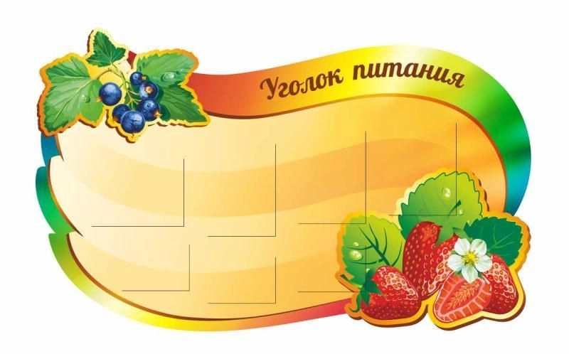 Стенд меню "Уголок питания". На стенде размещено 4 кармана формата А4 и 3 кармана формата А5.