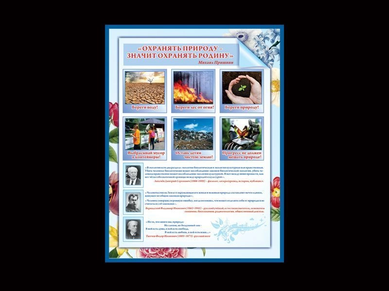 Наглядное пособие "Охранять природу" для размещения в школьном кабинете. На наглядном пособии размещена информация о том, что мы можем сделать полезного для окружающей среды.