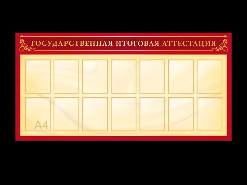 Информационный стенд "Государственная итоговая аттестация" разработан для размещения в школьной рекреакции. Стенд классической формы и цветовой гаммы, впишется в интерьер любого помещения. Большое количество карманов А4 формата, позволит разместь всю необходимую информацию на стенде.