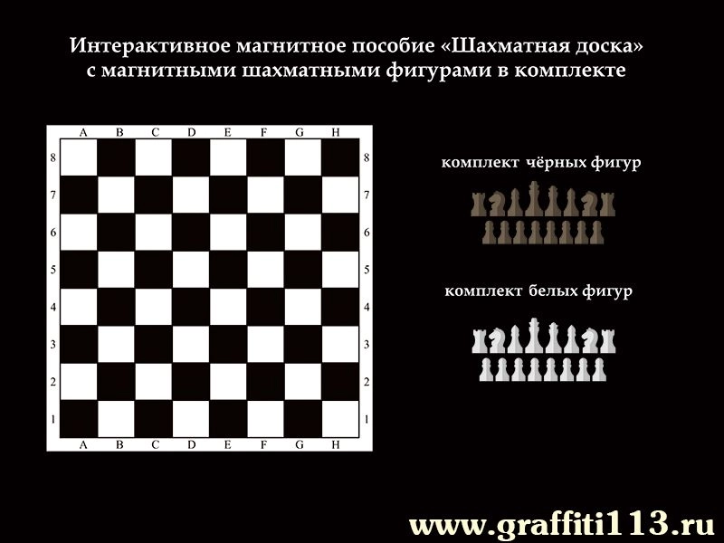 Интерактивное магнитное пособие "Шахматная доска" с магнитными шахматными фигурами в комплекте.