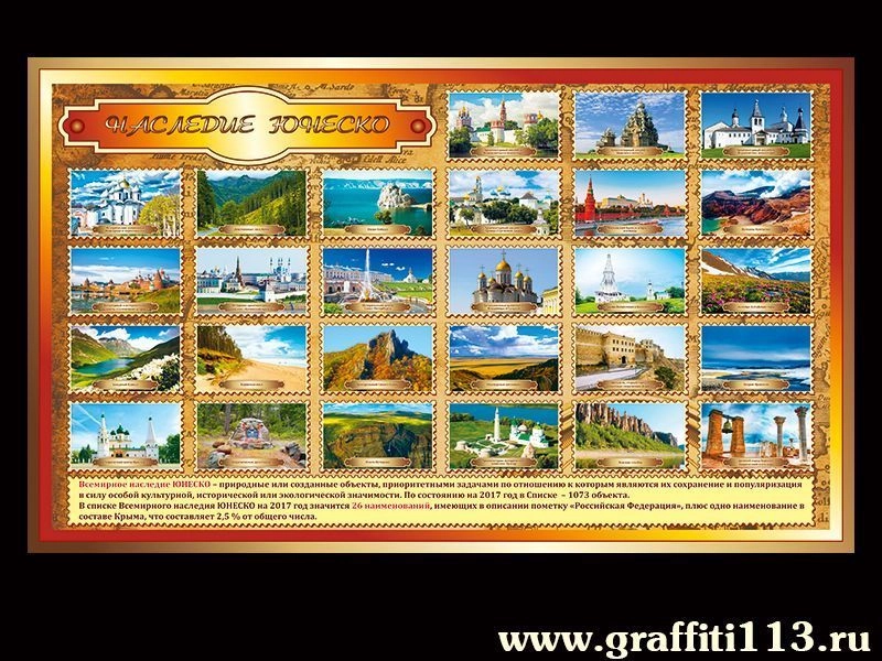 Стенд с самыми популярными объектами из всемирного наследия ЮНЕСКО.