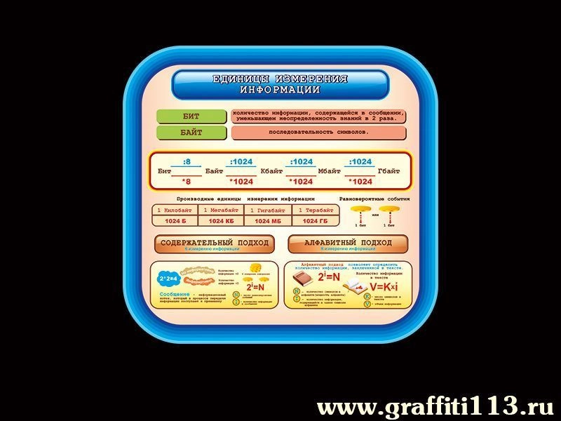Наглядное пособие по информатике "Единицы измерения информации", для размещения в кабинете школы или колледжа.