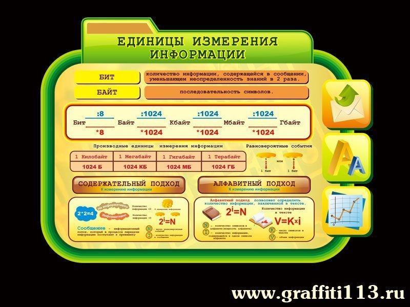 Стенд информационный "Единицы измерения информации" для размещения в кабинете информатики в школе.