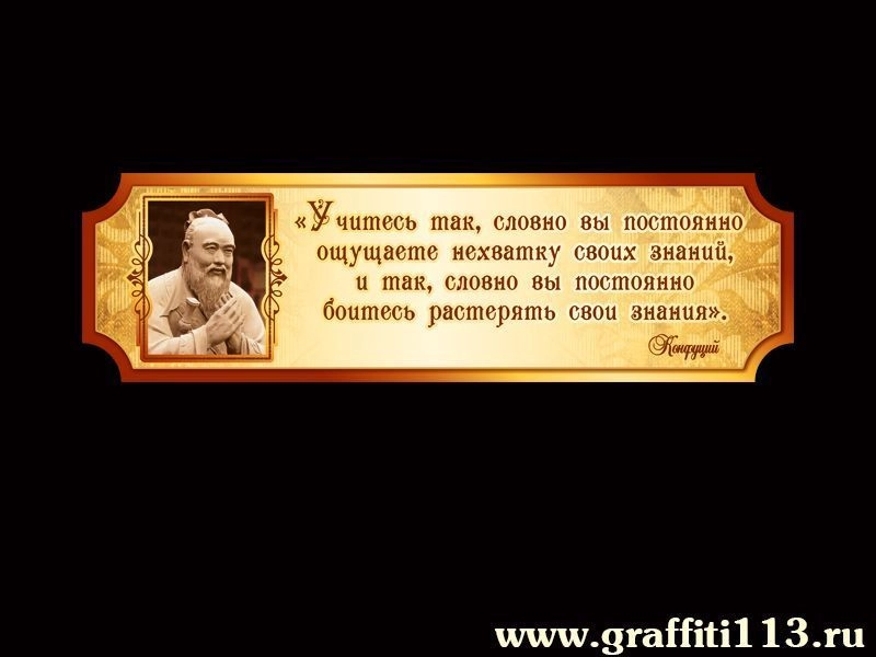 Декоративный стенд "Высказывание Конфуция" изготовлен из пластика ПВХ 3 мм. Изображение - интерьерная печать экосольвентными чернилами на глянцевой пленке, с разрешением 1440 dpi. Стенд выполнен в насыщенных оранжево-коричневых оттенках с бежевым внутренним фоном и винтажной текстурой по краям.