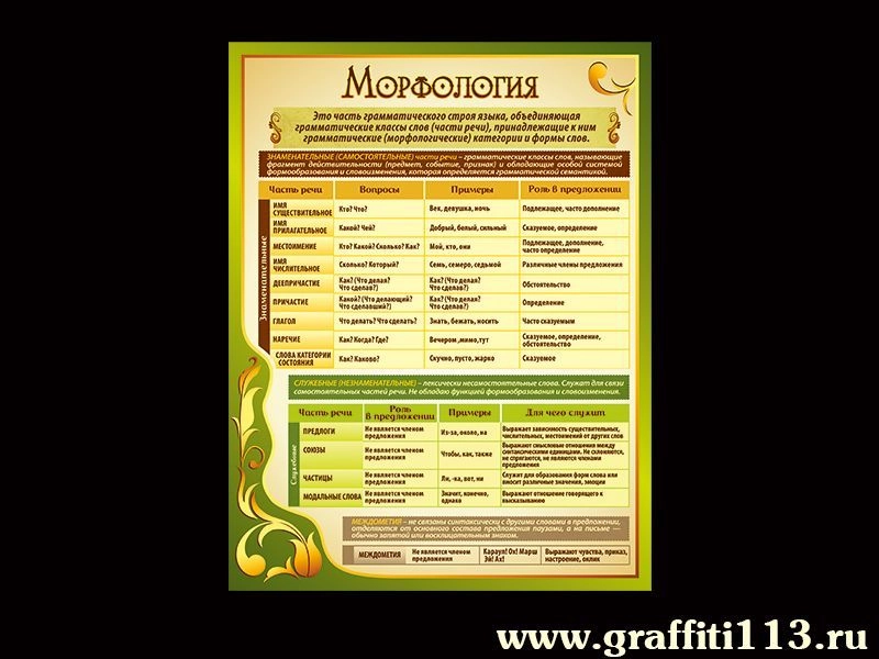 Наглядное пособие по русскому языку для пятого класса по теме "Морфология".