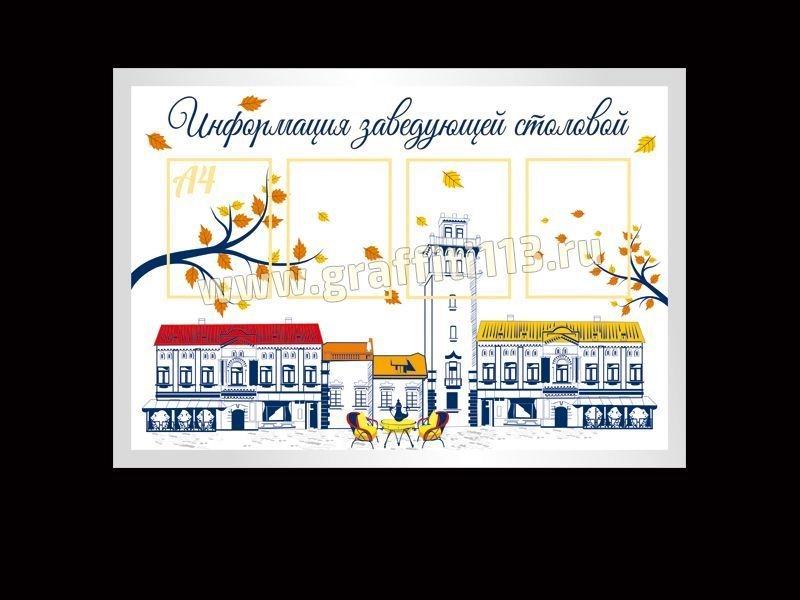 Стенд информационный в столовую "Информация заведующей столовой". На стенде размещено 4 кармана формата А4.