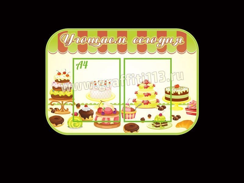 Стенд информационный в столовую "Угощаем сегодня". На стенде размещено 2 кармана формата А4.