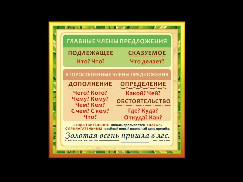 Пособие Главные и второстепенные члены предложения для оформления кабинета начальной школы.