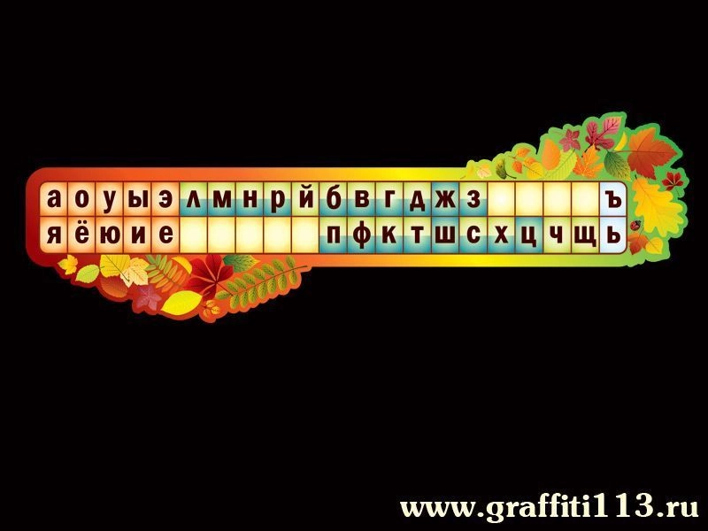 Стенд "ЛЕНТА БУКВ" один из наиболее важных и необходимых стендов для кабинета начального класса. Стенд небольшой и очень удобно размещается над магнитно-меловой доской. Стенд представляет собой наглядное пособие по изучению звуко-буквенного анализа слов, основных понятий из области фонетики: гласные и согласные звуки; согласные звуки мягкие и твердые, парные и непарные, глухие и звонкие, обозначающие твердость и мягкость согласных. Особенностью данного стенда явяется оригинальный декор в виде осенних листьев, для того чтобы детям было интереснее изучение нового материала.