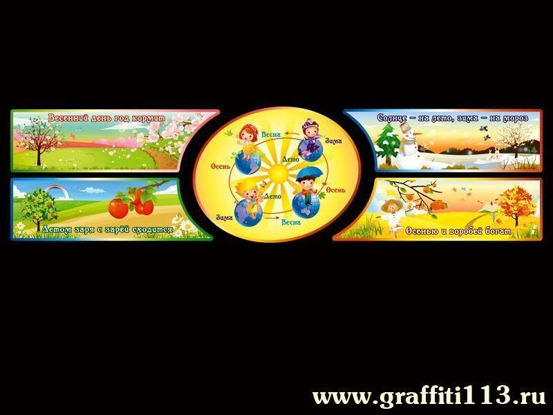 Декоративный стенд «Времена года» незатейливой формы, исполненный в красочных тонах, позволит вам с легкостью рассказать детям о том, как меняется погода на нашей планете и в России в зависимости от времени года. Детям будет интересно изучать времена года с таким ярким стендом.