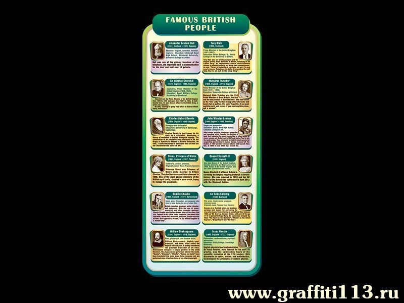 Стенд информационный "famous British People" для размещения в кабинете английского языка в школе или языковом клубе.