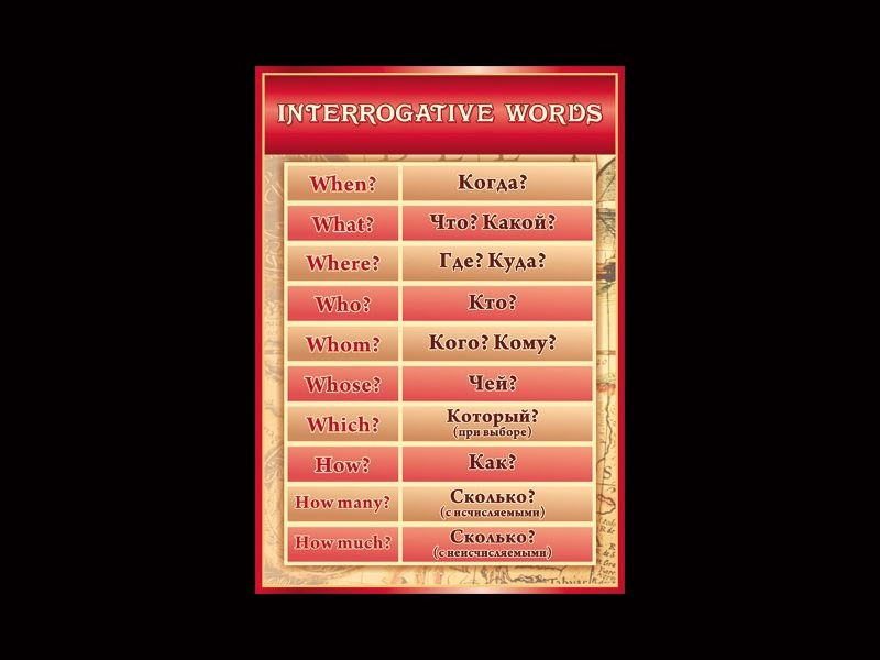 Стенд-наглядное пособие "INTERROGATIVE WORDS" для размещения в школьном кабинете английского языка или в языковом центре.