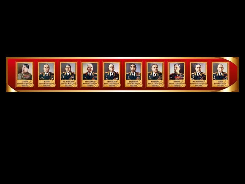 Стенд-лента с портретами полководцев в кадетский класс, в парадном оформлении золотисто-красного цвета.