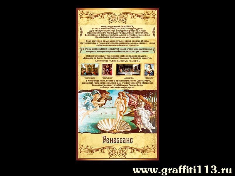 Стенд для оформления кабинета МХК "РЕНЕССАНС" в школе или колледже.