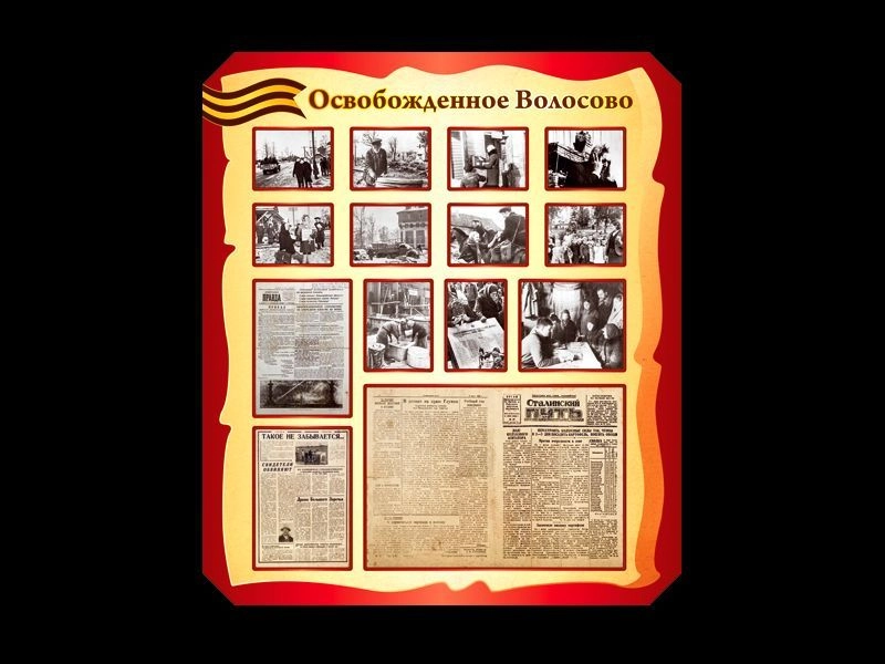 Кропотливо оформленный музейный стенд всегда вызывает трепет при прочтении. Наша задача обработать предоставленную информацию максимально качественно и разместить её на стенде достаточно зрелищно и понятно. Стенд "Освобождённое Волосово" яркий пример качественной обработки имеющихся материалов заказчика.