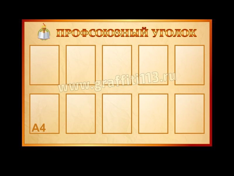 Информационный стенд "Профсоюзный уголок", на котором расположено 5 карманов формата А4.