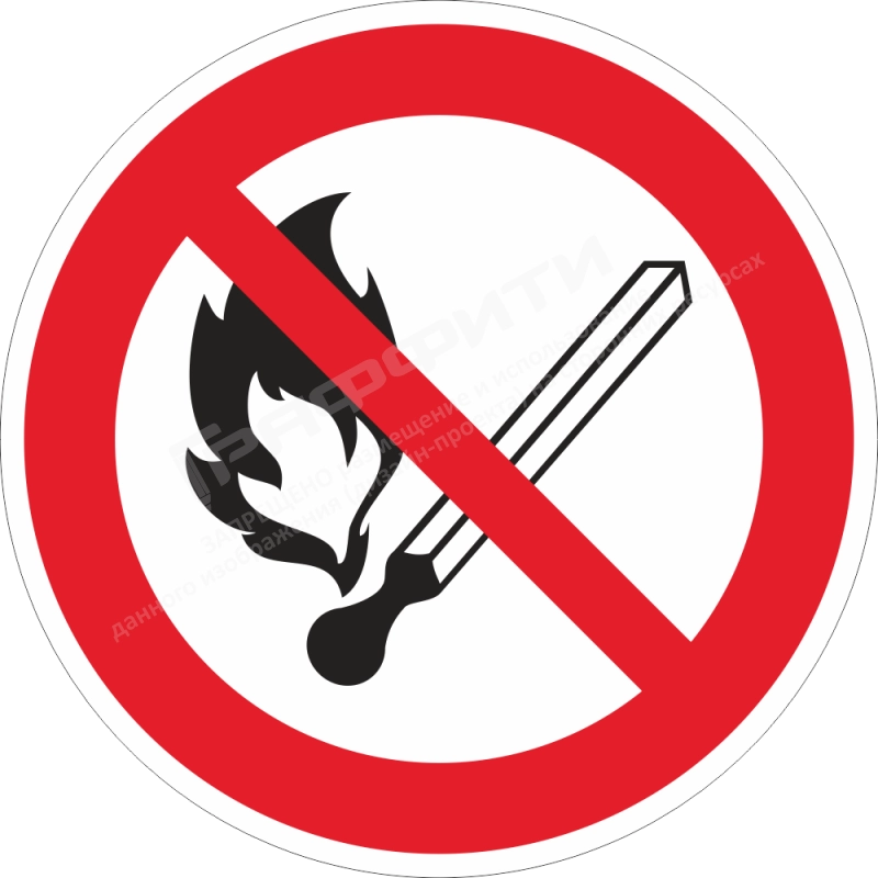 Наклейка безопасности "Запрещается пользоваться открытым огнем и курить". Изготовлена из белой самоклеющейся пленки.