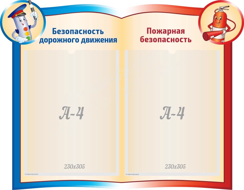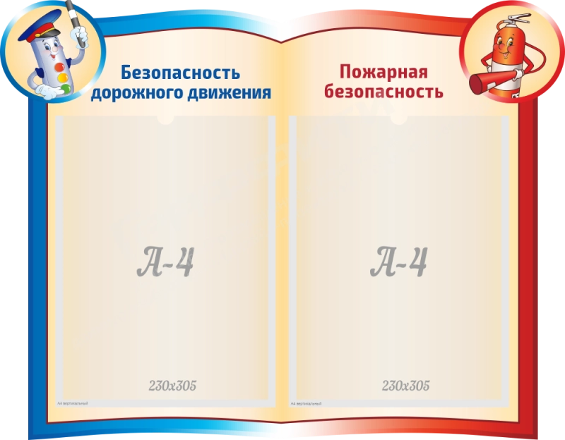 Красочный стенд в в форме книжки по безопасности дорожного движения и пожарной безопасности.
