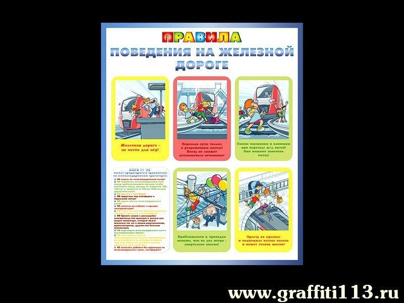 Наглядное пособие для младшей и средней школы, по безопасности - очень важное и нужное информационное пособие для обучения детей. Данное наглядное пособие по безопасности дорожного движения, рассказывает о правилах поведения на железной дороге в доступной форме в виде красочных и содержательных картинок, а также краткого списка основных и важнейших правил поведения на железной дороге. Расскажите детям об этих правилах - уберегите их от неправильных решений!