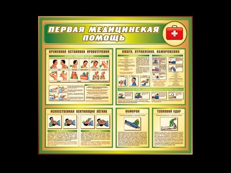Важнейший информационный стенд об оказании первой медицинской помощи, для размещения в любом образовательном учреждении.