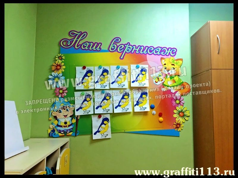 Оригинальные, интересные, красочные стенды для оформления группы в детском саду от компании «Граффити», украшают стены многих дошкольных учреждений Москвы, Санкт-Петербурга, Екатеринбурга, Ханты-Мансийска и многих других городов России. У Вас есть необычное название группы, но нет тематического оформления? Наша творческая команда создаст для Вас яркую историю вашей группы в стендах и не только.